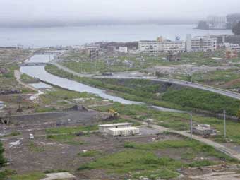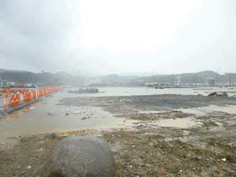 今はもっと更地が増え、写真奥のスーパー「サンポート」や志津川病院も解体された。