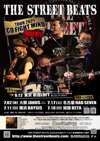 #713 2021年6月15日(火) サンキューBEATNIKS! 次は7.2大阪で会おう! 先週末の新宿LOFT、集まってくれたBEATNIKSみんなサンキューでした! 全身全霊、弾けて燃えて、生きてる証を実感できた最高の夜だった。感謝! 配信で見てくれたみんなもありがとう!今週いっぱい何度でも見て楽しんで! ☆6.12新宿LOFTライブ配信中 https://is.gd/cjDFe3 (6.19まで) ライブで演奏する毎に新曲達が加速度的に生々しく息衝き、逞しさを増す。 お客さんの思いと融合して分かち合えることでどんどん血となり肉となり 楽曲の持つパワーが更に上がっていく感覚。やはりライブに勝るものはない。 歌は人と人の想いの結晶。聴く人があってこそ歌は生身のリアルさを生む。 そして何年何十年と唄ってきた歌達は今この時この時代を生きる俺達お前達に やはり何物にも代えがたいパワーとエネルギーをくれる。音楽には力がある。 ライブには力がある。あらためて実感した夜。矜持を胸に前進してゆくのみだ。 直接みんなと会える機会はコロナ禍前の通常時の頃には遠く及ぶべくもないが、 それでもみんなの応援のお陰でこうして2021年上半期を乗り切ることができた。 あらゆる自粛や協力を無にされた去年一年の理不尽な虚しさや憤りに比べれば、 今年はこうしてツアーを組んでライブが出来ているだけでも有難いというもの。 宣言解除されて職場のお達しや近隣の目が今より少しはマシになり、一人でも 多くの人が再びライブ会場に戻ってこれるようになっていってくれるといいね。 さあ!そして下半期のスタート、7月もビーツは止まらず転がり続けるよ! まずは7月2日(金)大阪JANUS!まさかの休業要請で延期の憂き目に遭ったけど、 お陰で楽しみが一つ残ったと思って全力でやり上げるよ!8か月ぶりの大阪。 去年来てくれた人なら知っての通り、どこよりも広く開放的でゆったり快適な 会場スペースで感染対策が徹底されてる大阪JANUS。待たされて我慢した分、 ご褒美だと思って存分にお互い楽しみましょう!全身全霊熱く待ってろ大阪! そしてMORE!!MORE!!MORE!!ライブの素晴らしさが俺達を衝き動かして止まず。 7.11(土)横浜BAYSIS、7.17(土)名古屋RADSEVEN、7.18(日)姫路BETA。 4月のライブを体感してくれた人は勿論、4月の時点ではまだ周囲の状況諸々が 厳しくて参戦を断念したという人も、3か月経ってワクチンも進むこの7月、 少しは状況がマシになって今回は参戦できそうなら是非とも!待ってるよ! 初夏の陽射しが力をくれる。太陽パワー浴びて旅空の下でまた会いましょう! ☆TOUR 2021 GO FIGHT MIND MORE!!☆ 7.02(金)大阪 JANUS [5.16振替公演]*配信あり 7.11(日)横浜 BAYSIS *配信あり 7.17(土)名古屋 RAD SEVEN *配信あり 7.18(日)姫路 Beta *配信あり 全公演17時開場/18時開演 入場チケット¥4500発売中 ローチケ https://is.gd/LvhLRP e+ https://is.gd/O5zwKJ 配信チケット¥3000発売中 7.02大阪配信 https://is.gd/9PWZnX (7.16まで) 7.11横浜配信 https://is.gd/1Al2m9 (7.25まで) 7.17名古屋配信 https://is.gd/hJhgnn (7.31まで) 7.18姫路配信 https://is.gd/qqfhP2 (8.01まで) ☆Facebook https://www.facebook.com/thestreetbeats/ ☆Instagram https://www.instagram.com/thestreetbeats_official/ ☆Twitter https://twitter.com/thestreetbeats ☆Space Shower https://spaceshowermusic.com/artist/10796404/ ☆Victor http://www.jvcmusic.co.jp/-/Artist/A000926.html ☆THE STREET BEATS 公式YouTube ![]() | ||||||||||||