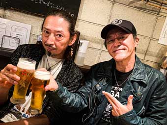 #763 2022年10月18日(火) 「TOUR 2022|RESIST!」アクティブ&アグレッシブDAYS♪ 10月もあっという間に半ばを過ぎて、ツアー開幕まであと2週間ちょっと。 リハーサルもがぜん熱を帯びてきて、先日のリハでは仮セットリストを組んで まるで本番さながらに歌もコーラスも有りで20曲くらいガッツリやり上げた。 ここんとこ人のライブにちょいちょい顔を出したり呑み席も続いていたせいか、 リハでびっくりするほど大量に気持ちいい汗をドバドバかいて、家に帰ったら 軽く1kgくらい体重絞れてた。代謝上がってデトックス効果バツグンらしい(笑)。 今週来週でまずはツアー序盤3本の構成を固めて実戦形式で仕上げていく流れ。 みんなスケジュール忙しい中、感謝&リスペクト。ワクワク感ハンパない♪ 9月10月と人に会う機会が一気に増えて、イイ刺激をたくさんもらっている。 ビーツのリハやミーティング兼呑みは勿論、それ以外でも外呑みの日が増えた。 アクティブ且つアグレッシブで爽快な日々。以下、少しメモ風に記しておこう。 ・9月某日。みちのくプロレスのレスラーKen45と卍丸と神宮球場で野球観戦。 珍しくヤクルト対中日。Kenが中日ファンでね。2人と呑むのは実に2年半ぶり。 次代のエース高橋宏斗VS若き三冠王村上宗隆の対決はさすがの見応えだった。 野球とロックが好きな2人との楽しき呑み。またいつでもライブ来てくれよ♪ ・10月某日。昔からビーツのMVやライブDVDなどで数多くお世話になっている 映像作家・髙原秀和監督が主宰する劇団「lovepunk」の舞台公演を観に行く。 この劇団は好きでほぼ毎年皆勤賞で観ていて、今回も笑いと涙でグッときた。 髙原さん相変わらずイイ脚本と味な演出で魅せてくれる。今作が一番好きかも。 ・10月某日。エンリケさんがベースを弾いている、バービーボーイズ時代の リーダーいまみちともたかさんのライブを観に行く。珍しく二子玉川まで遠出。 客席からエンリケさんを観るのは数年前のバービー再結成ライブの時以来か? イマサさんの自由自在なギターワークと歌世界は新鮮さと同時に懐かしい感じ。 そして相変わらず安定感と個性が光るエンリケスタイル♪この日は昼ハシゴ酒 だったのだが、ライブ後に偶々見つけた中華BAL風の店に飛び込みで入ったら めちゃくちゃ料理が美味くてエンリケさんと乾杯の酒が進むこと進むこと(笑)。 さすがシャレオツタウンのニコタマ。危うく終電逃すとこだった(遠いのに)。 ・10月某日。ケンジ&トリップスのKENZIさん弾き語りソロライブを観に行く。 学芸大駅。これまた遠いがこの日はARBのキースさんがゲスト出演とのことで、 これは貴重なレアLIVE、ということで出動。さすがのKENZIワールド全開。 「ブラボージョニー~~」や「爆竹ガール」、スターリンの「ロマンチスト」、、、 名曲も新曲もカバーも楽しめたし刺激たくさんもらった。弾き語りいいね♪ そしてキースさん、久々にお会いできて嬉しく、お元気そうでなによりだった。 KENZIさんの唄&アコギとキースさんのドラムによるARBの「TOKYO CITY~」や 「ダディーズシューズ」とか、貴重なモン観せてもらえて感謝。良き夜だった。 そしてこの夜は終電逃さないよう早めに新宿までは戻ったのだが、新宿で軽く 呑もうとなってそれがまさかの朝5時まで呑んじまい始発で帰宅というオチ。 そんなこんなで元気溢れてボディもマインドも軽やかに日々充実のナイスDAYS。 さあ!リハもいよいよ佳境に入る。ヒロシバージョン、エンリケバージョン、 セトリもそれぞれ個性が炸裂するいろんな楽曲が入ってるので楽しみすぎる。 ムタ君もセイヂも,みんな体調気を付けて元気溌溂ゴキゲンにいきましょう! (セイヂと呑んでるのウルフさんとロマンチスト豊武だね。ナイスショット♪) 直近のリハは今週ヒロシで仮セトリを一気にぶっ通してみる予定。燃えるぜ。 引き続き感謝とリスペクトを胸に、ツアー開幕に向けて精進していきます! ファンの皆さんもめちゃくちゃ期待して楽しみに待っててください! THE STREET BEATS TOUR 2022|RESIST! 11.03(祝)横浜 BAYSIS *配信あり 11.05(土)姫路 Beta *配信あり 11.06(日)豊橋 club KNOT *配信あり 11.26(土)広島 SECOND CRUTCH 11.27(日)福岡 DRUM SON 12.03(土)名古屋 RAD SEVEN *配信あり 12.04(日)大阪 Music Club JANUS ★2022 FINAL LIVE★ 12.10(土)東京 新宿LOFT *配信あり ☆ゲストベーシスト☆ HIROSHI(THE STAR CLUB)初参戦!! 元メンバー・エンリケ(BARBEE BOYS)22年ぶり参戦!! 全公演|開場18:30|開演19:00 *11.6豊橋公演のみ 開場18:00 開演18:30 前売¥4500発売中|当日¥5000 ローチケ https://is.gd/LvhLRP e+ https://is.gd/O5zwKJ LOFT HP https://is.gd/jSqvdg 配信¥3000発売中 11.3横浜 https://is.gd/pyoZqK (11.17まで購入&視聴可能) 11.5姫路 https://is.gd/mFZwqk (11.19まで購入&視聴可能) 11.6豊橋 https://onl.tw/xRYGtzg (11.20まで購入&視聴可能) 12.3名古屋 https://is.gd/ab5b7m (12.17まで購入&視聴可能) 12.10東京 https://is.gd/FJzyct (12.17まで購入&視聴可能) NEW MAXI SINGLE『ロックンロールサバイバー』 4.9発売中|ライブ会場&通販限定発売 NVL-1828 ¥1800 全5曲 NEOVISION通販受付中(詳細は