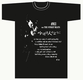 遂に『吟遊詩人のように』Tシャツの登場です!黒地に白のシンプルなデザイン。バックには「吟遊詩人のように」の歌詞を、フロントには煙草に火を点けるOKIのシルエットとタイトルロゴに加え、歌詞の英訳分をクールにデザイン。はっきり言って激シブ。即買いをおススメします!